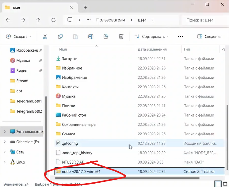 потом его разархивировать в папку пользователя например