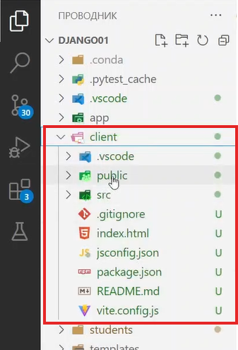 после завершения ответов увидим, что у нас появилась новая папочка client