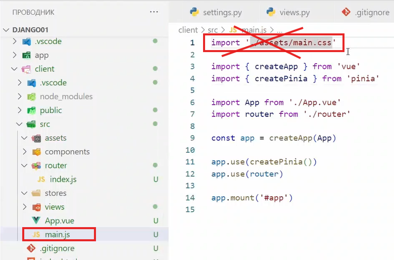 и удаляем ссылку в main.js