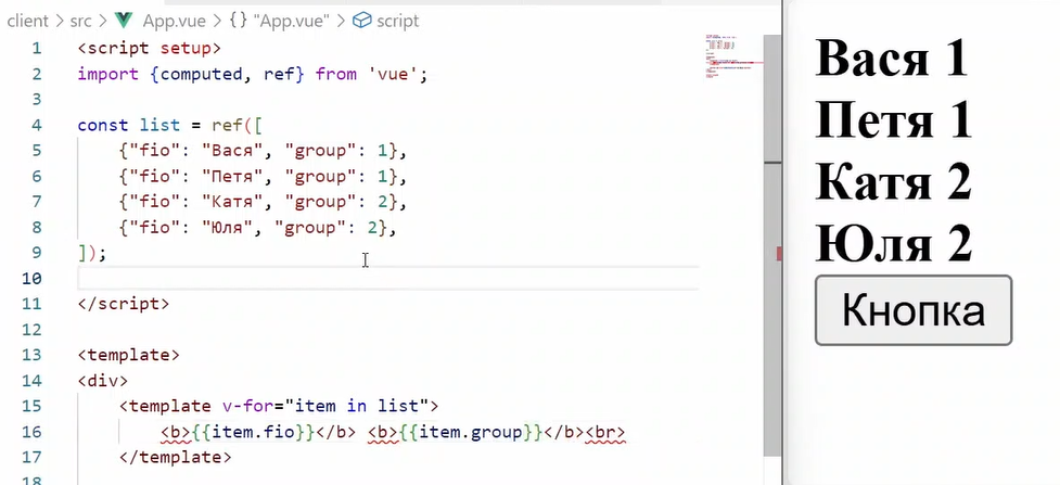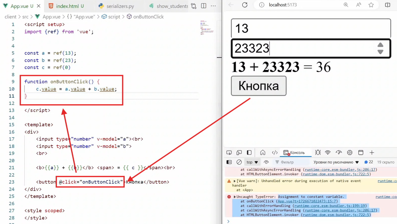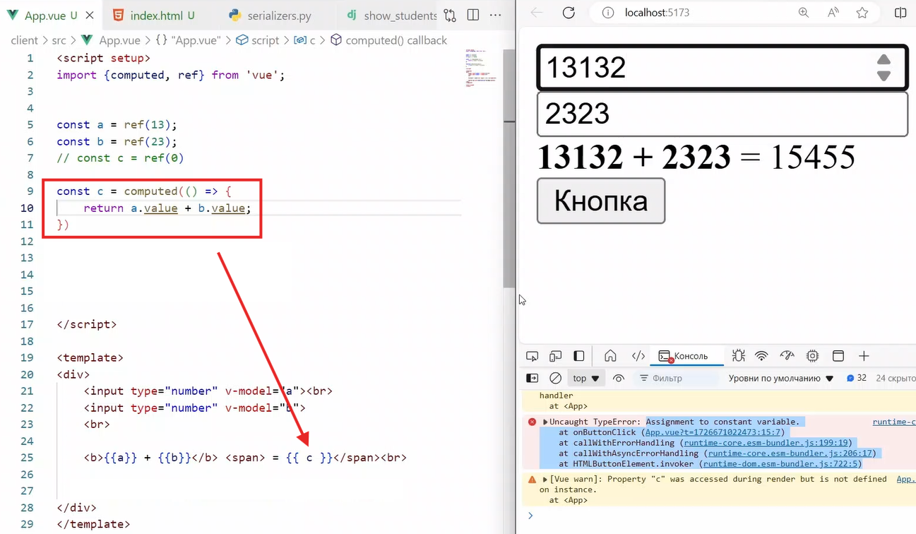 Работа с реактивными переменными