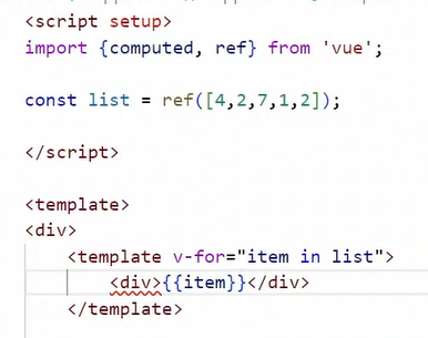 чтобы вывести массив, объявите его обернув в ref, а затем выведите через v-for