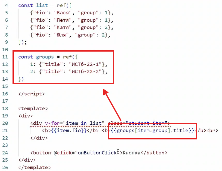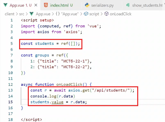 теперь добавим себе переменную под студентов подключим ее к результату запросов